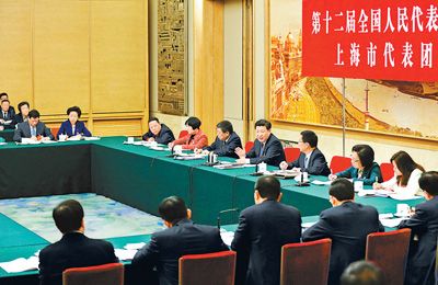 2016年3月5日,中共中央总书记、国家主席、中央军委主席习近平参加十二届全国人大四次会议上海代表团的审议发表重要讲话。新华社记者 鞠鹏摄 会议提出,从严治党,关键是要抓住领导干部这个“关键少数”,从严管好各级领导干部。