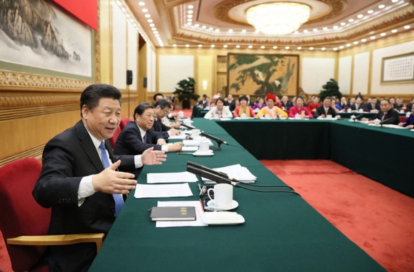 2016年3月8日,中共中央总书记、国家主席、中央军委主席习近平参加十二届全国人大四次会议湖南代表团的审议。 新华社发