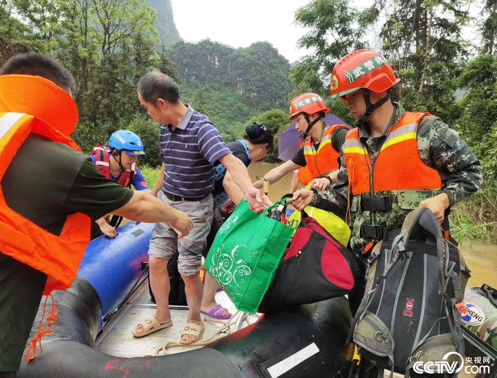央视网消息:6月9日,广西桂林多地再迎暴雨天气,阳朔县高田镇天子圩杨家村、欧家村再此被洪水围困化为孤岛,水位高于6米,淹及房屋二楼,约有500名群众被困。当日中午12时,武警桂林支队31名官兵联合当地救援力量,驾3艘冲锋舟挺进灾区,转移群众30余人。