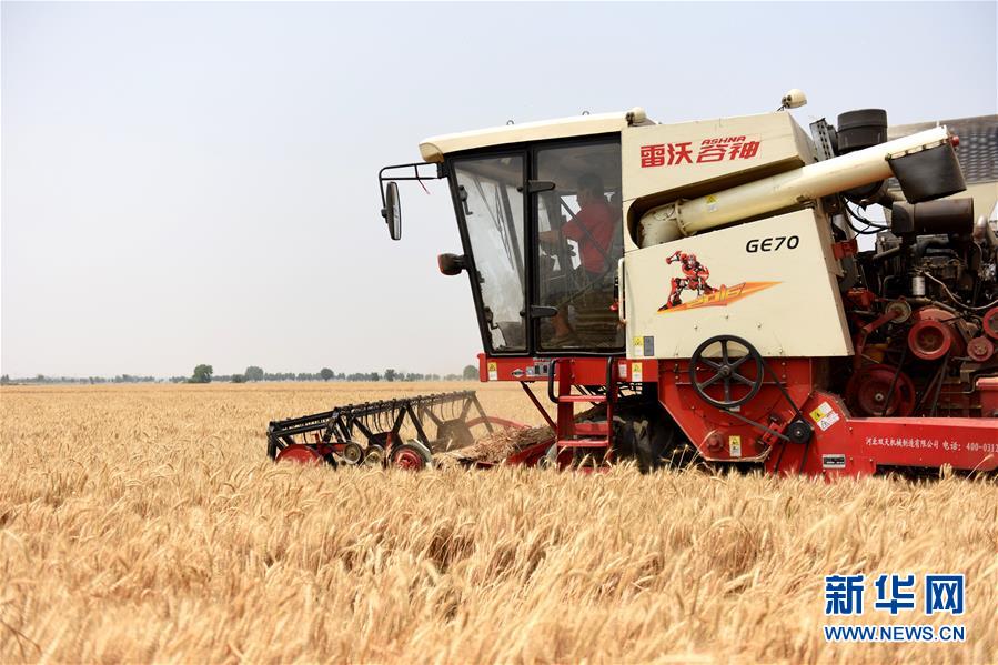 6月10日,在南和县闫里乡杨庄村的一处麦田里,高志勇驾驶联合收割机收割小麦。新华社记者 朱旭东 摄