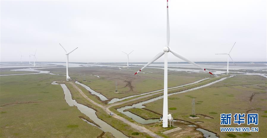 任义军和同事乘坐车辆在江苏大丰野生麋鹿活动区内进行巡护(6月9日摄,无人机照片)。新华社记者 李博 摄