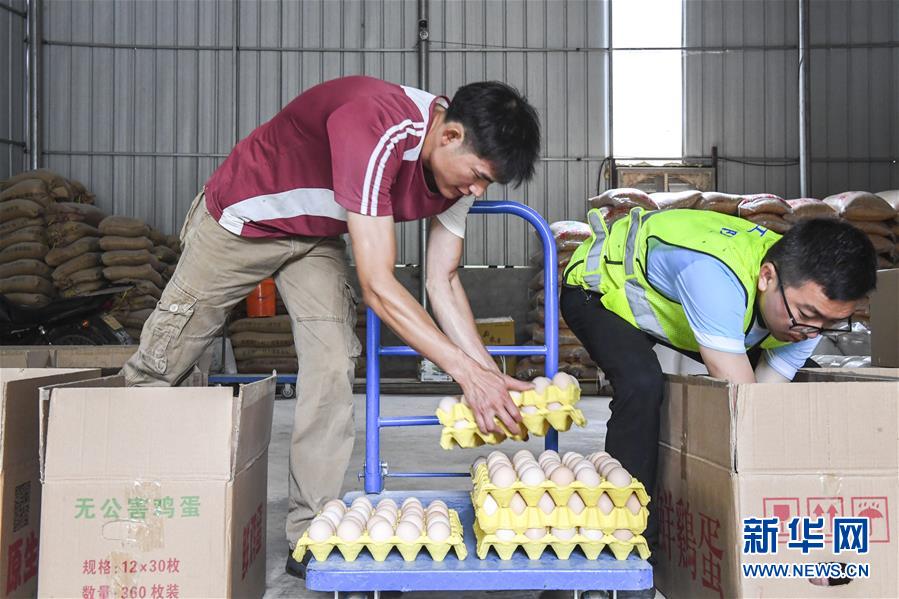 6月18日,覃永灵将鸡蛋装箱。新华社记者 曹祎铭 摄