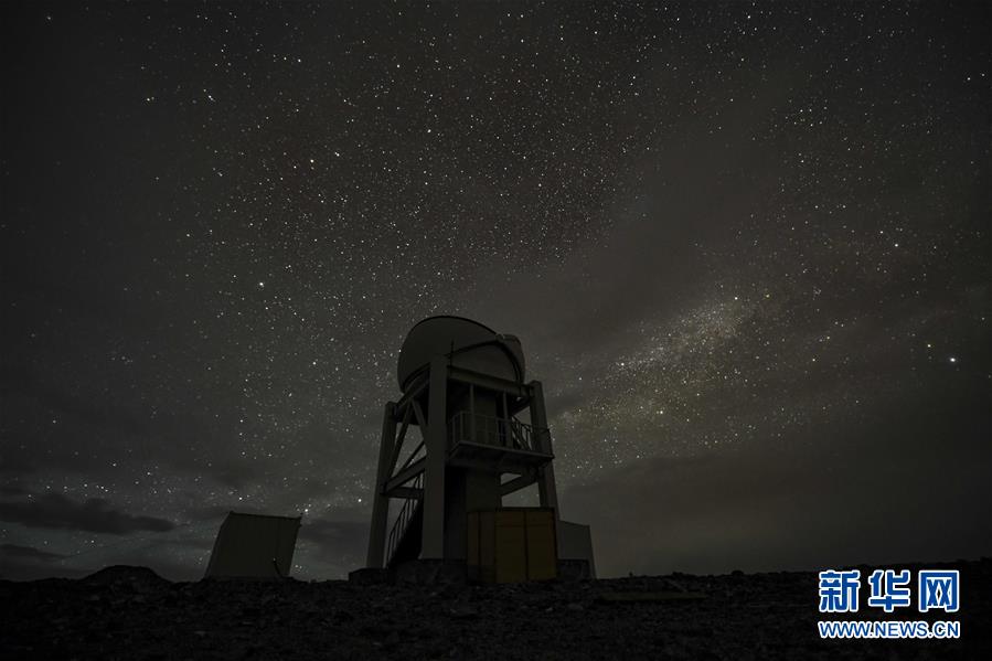 星空下的中国科学院新疆天文台慕士塔格观测站一角(6月16日摄,长时间曝光)。新华社记者 胡虎虎 摄