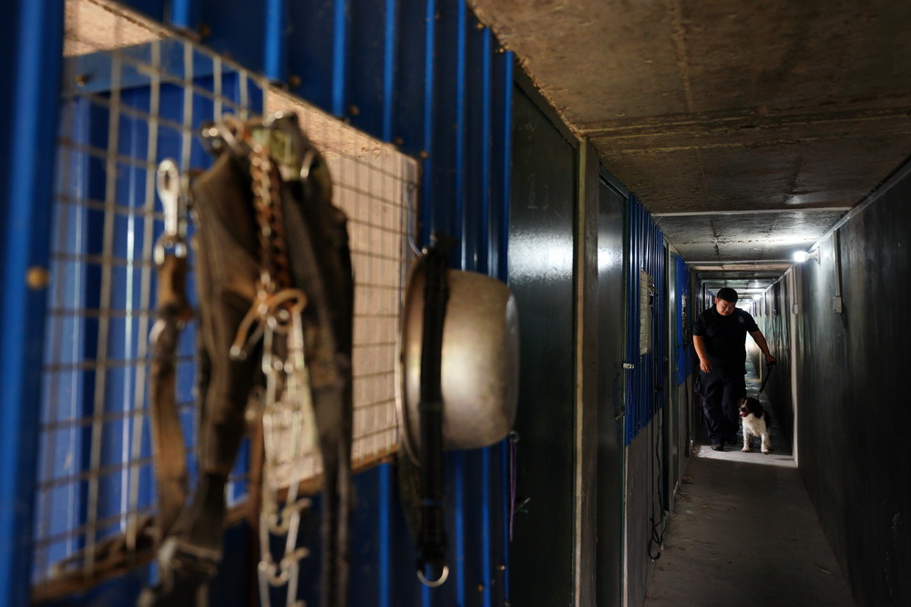 6月26日,周伟带着“播求”走出警犬犬舍。