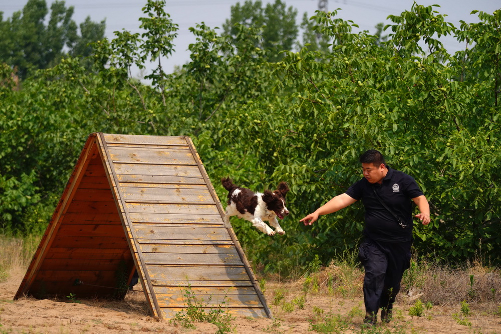 6月26日,河北省邢台市公安局警犬基地训导员周伟带着棕白相间的史宾格犬“播求”进行毒品搜查训练。突然,“播求”安静地坐到地上,抬头看了看周伟,而后两眼盯着三号搜救箱,周伟打开搜救箱发现里面有一个放有毒品的盒子。不到1分钟,精心藏匿的毒品就被“播求”从7个搜救箱里搜寻出来。