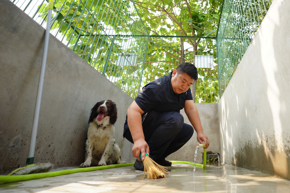 “夏天一股味,春秋一身毛,冬天还要把冰刨。”是周伟这些警犬训导员日常生活的真实写照。由于需要每天不间断训练,训导员放弃了很多节假日,对警犬进行训练、喂养、医疗防疫等。