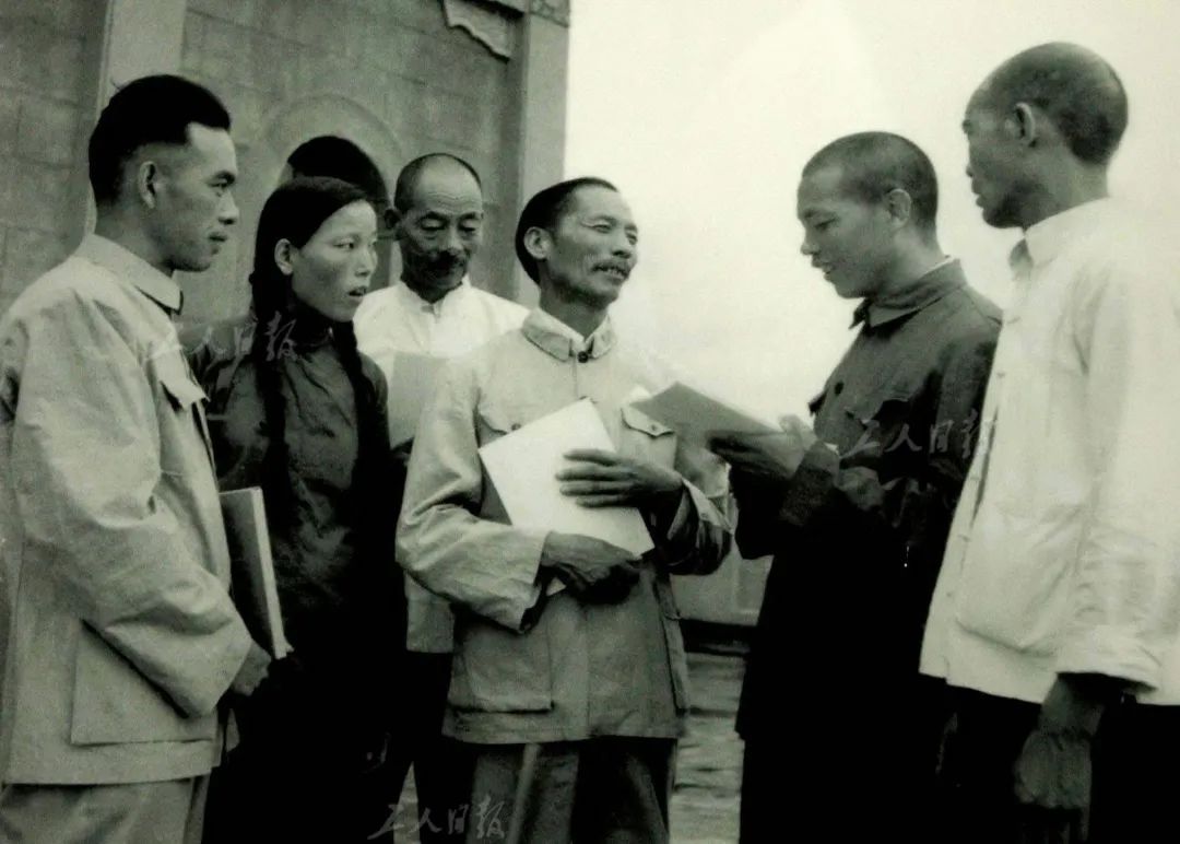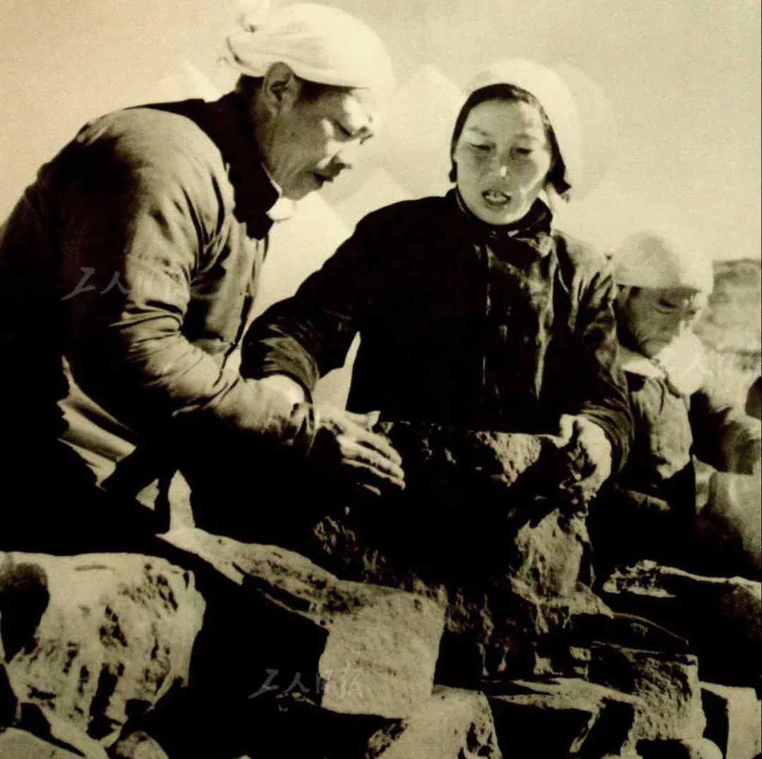 ▲1954年,西沟村遭遇洪水袭击,申纪兰和乡亲们恢复生产。工人日报资料照片