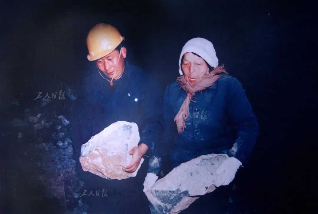 ▲上世纪90年代申纪兰在筑路工地劳动。工人日报资料照片