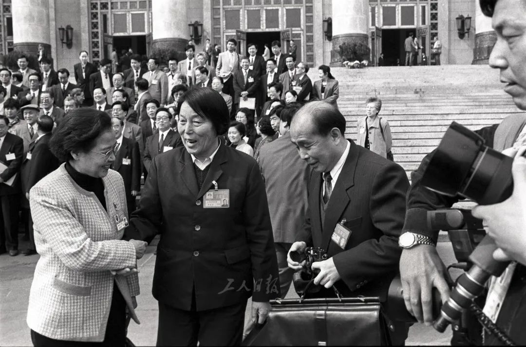 ▲1997年,申纪兰在参加两会期间应同会的代表邀请合影。于文国 摄