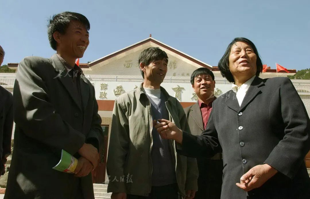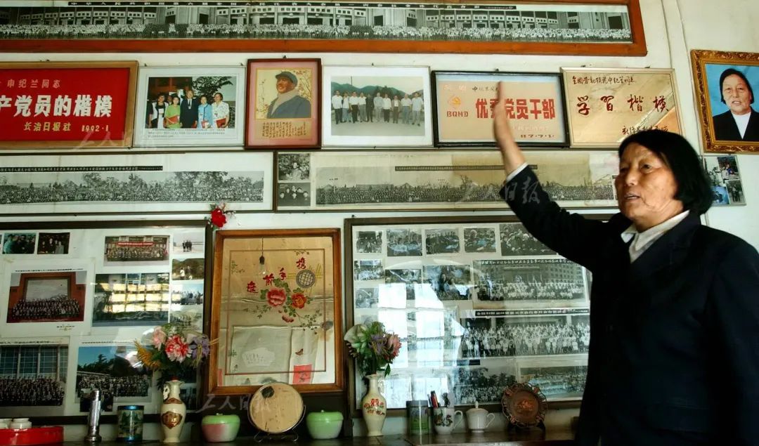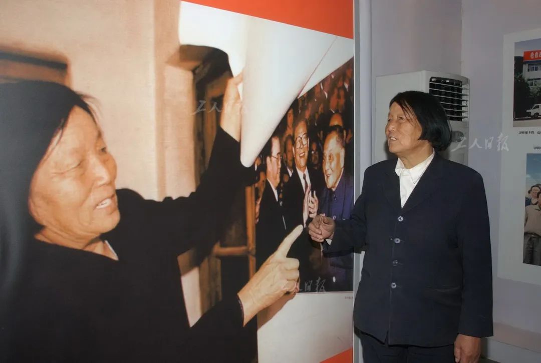 ▲2002年,申纪兰在西沟村的农产品深加工的企业现场办公。于文国 摄
