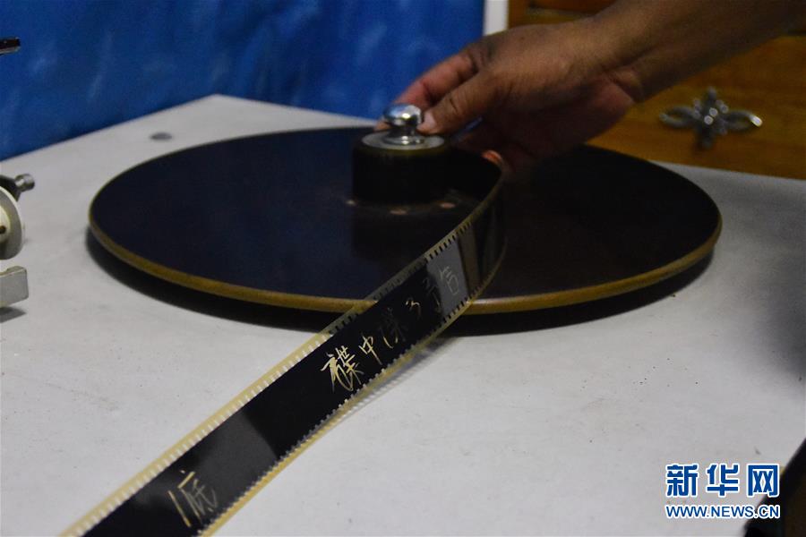 6月30日,在马鸣电影馆内,朱生荣整理《碟中谍3》的胶片拷贝。新华社记者 郑梦雨 摄