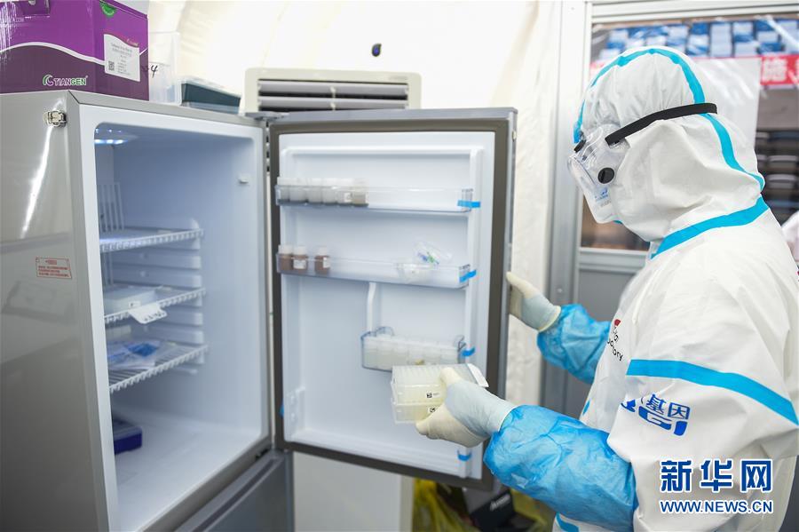 7月1日,在提取实验室内,实验人员拿出准备实验的样本板。 新华社记者 彭子洋 摄