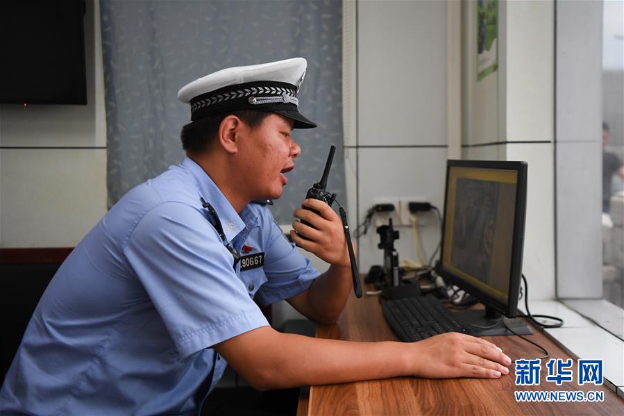 6月28日,邹科在位于橘子洲大桥的值班岗亭内通过对讲机和同事交流。 今年30岁的邹科是长沙市岳麓交警大队六中队的民警。疫情期间,他曾在高速收费站24小时值守,指挥交通、为过往人员测量体温。连续4年递交入党申请书的他,在今年4月24日宣誓加入中国共产党。入党后,邹科更加紧密地服务群众。他说:“全心全意为人民服务是没有止境的,这是初心。” 新冠肺炎疫情发生以来,许多身处不同工作岗位的人们投身抗疫一线,勇敢“逆行”。他们在抗疫一线向党组织郑重提交了申请书,火线入党,书写新时代的责任与使命。在疫情防控进入常态化阶段后,他们各自返回原工作岗位,用实际行动践行党员的模范带头作用。 新华社记者 薛宇舸 摄