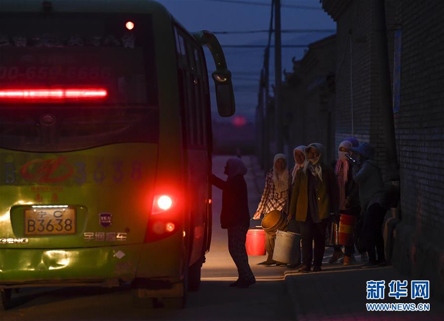 破晓时分,阵阵清脆的汽车喇叭声已响彻宁夏吴忠市红寺堡区大河乡开元村,三三两两头戴头巾、手提塑料桶的移民妇女登上枸杞采摘专车,准备前往十公里外的中宁县枸杞基地,开始一天的枸杞采摘劳动。