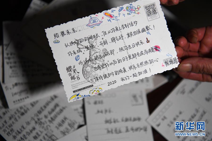 7月6日,程东东的妈妈刘香展示这些年同学们送给程东东的祝福卡片。新华社记者刘军喜摄