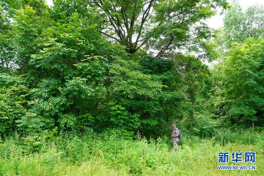 董红雨在迎春林业局有限公司施业区内进行野生东北虎信息搜集和巡护工作(7月8日摄)。新华社记者 马晓成 摄