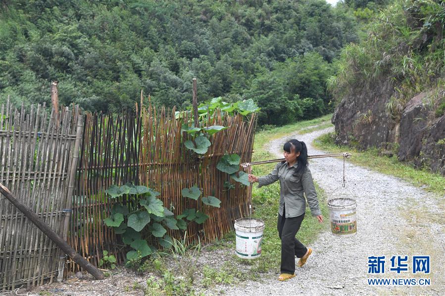 7月9日,在龙道山护林点工作站,黄日秀准备给菜园浇水。新华社记者 周华 摄