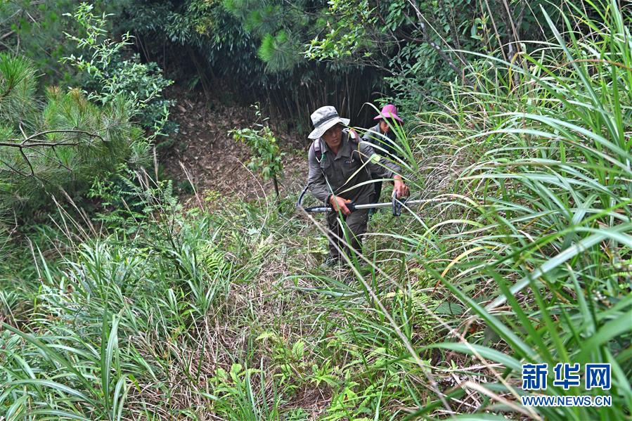7月9日,在龙道山护林点,黄通甫和妻子黄日秀在清理杂草。新华社记者 周华 摄