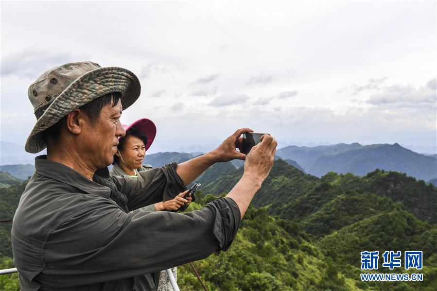 7月9日,在龙道山护林点的一处瞭望台上,黄通甫与妻子黄日秀在观测山林。新华社记者 曹祎铭 摄