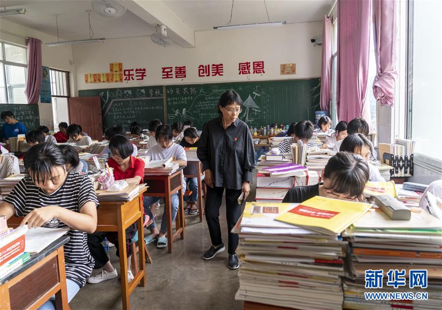 张桂梅在检查学生上课情况(7月4日摄)。 新华社发(陈欣波 摄)