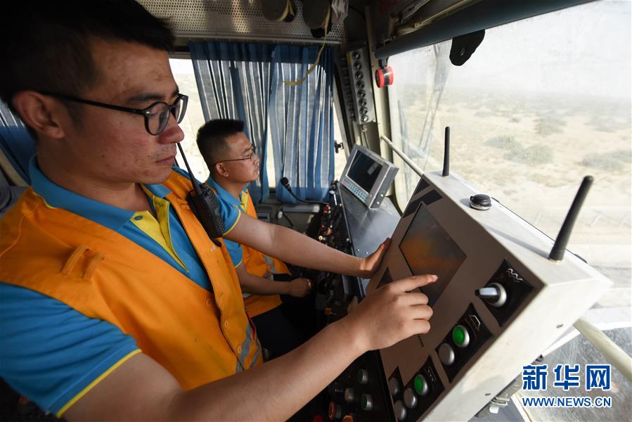 钢轨打磨机组的技术员在进行打磨作业(7月14日摄)。