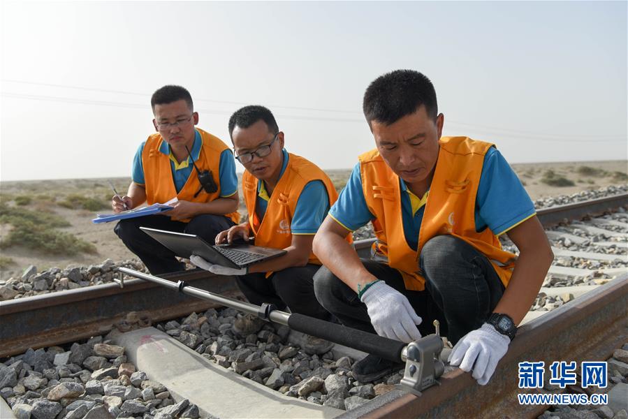 技术员进行钢轨廓形检测(7月14日摄)。新华社记者 丁磊 摄