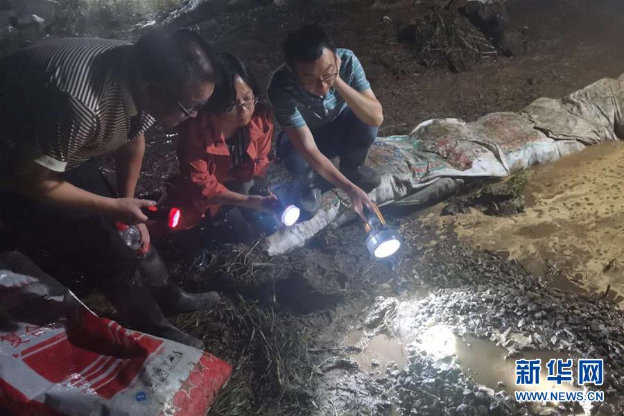 7月13日晚,枞阳县水利局高级工程师舒晓安(左一)在处置圩堤突发险情。 受长江持续高水位影响,安徽省枞阳县的铁铜乡江心洲已于近日将江心洲上的居民转移安置,而包括抢险队员、乡镇干部、水利工程师等在内的近300人“留守”在江心洲上巡堤查险,守护家园。铁铜乡位于长江江心洲上,有4个行政村52个村民组,耕地面积12000多亩。 新华社发