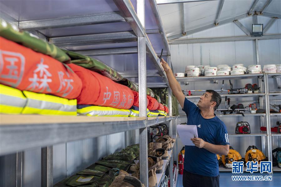 新疆艾比湖湿地国家级自然保护区的生态管护员帕勒哈提在清点管护站库房内的设备(7月14日摄)。他说,管护设备须每天清点保养,以备处理突发情况。 新华社记者 胡虎虎 摄