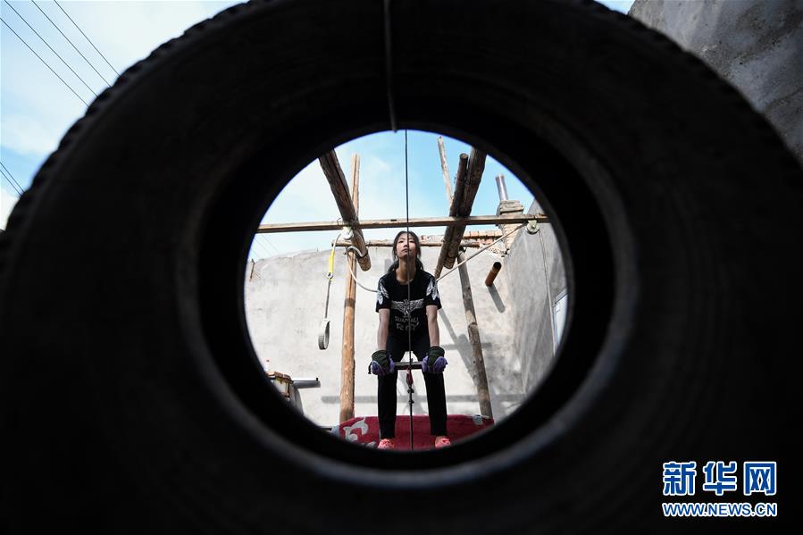 7月8日,郑国花在父亲为她打造的“健身房”里训练。新华社记者 刘磊 摄