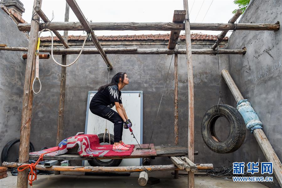 6月29日,郑国花在“健身房”训练。新华社记者 连振 摄