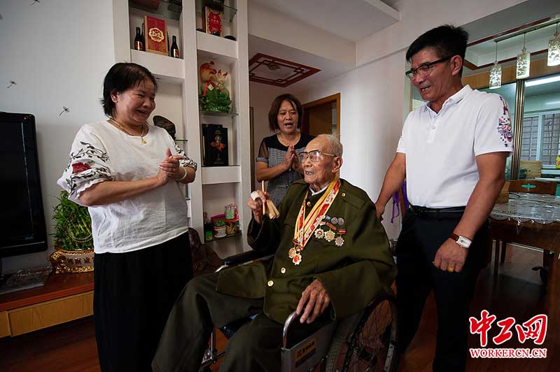 1954年转业后先后在浦城、政和、建阳等地的花纱布公司、城关公社、物资局、二轻局担任领导职务,1985年3月在建阳离休。如今,103岁的望朝聘老先生祖孙五代同堂,其乐融融。他的革命故事也一直往下传承,鼓舞教育着一代代人。(伊凡/视觉中国)
