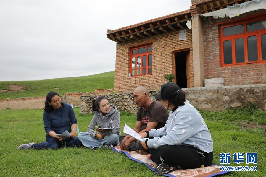 7月23日,在甘肃省甘南藏族自治州夏河县桑科镇岗岔村,卓玛吉(左二)和驻村帮扶工作队队员一起入户了解村民巴桑一家的生产生活情况。 岗岔村是甘肃省甘南藏族自治州夏河县桑科镇的一个牧业村,平均海拔3000米以上。2018年,在夏河县文明办工作的卓玛吉开始担任驻村帮扶工作队队长,每年都有200多天待在草原上。 两年来,卓玛吉带领大家开办扶贫车间,发展特色产业,联系劳务输出。为了让村民更全面地了解精准扶贫政策,卓玛吉登门宣讲政策。为了提高村容村貌,卓玛吉发动大家开展厕所革命和庭院环境评比,积极响应甘南藏族自治州“全域无垃圾”创建行动。她还从县城请来医生,为村民举办健康讲座,在全村妇女中开展“两癌筛查”。 如今,岗岔村变成了干净、整齐、富裕、美丽的生态文明村,提前实现了整村脱贫。谈起心愿,卓玛吉说:“要让草原和草原上的人都变得更美。” 新华社发(杜哲宇 摄)