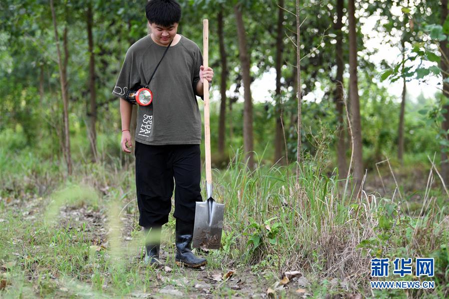 7月15日,家住安徽省佐坝乡振昌村的尹梦兴在同马大堤宿松县汇口镇曹湖村段巡查。新华社记者刘军喜摄