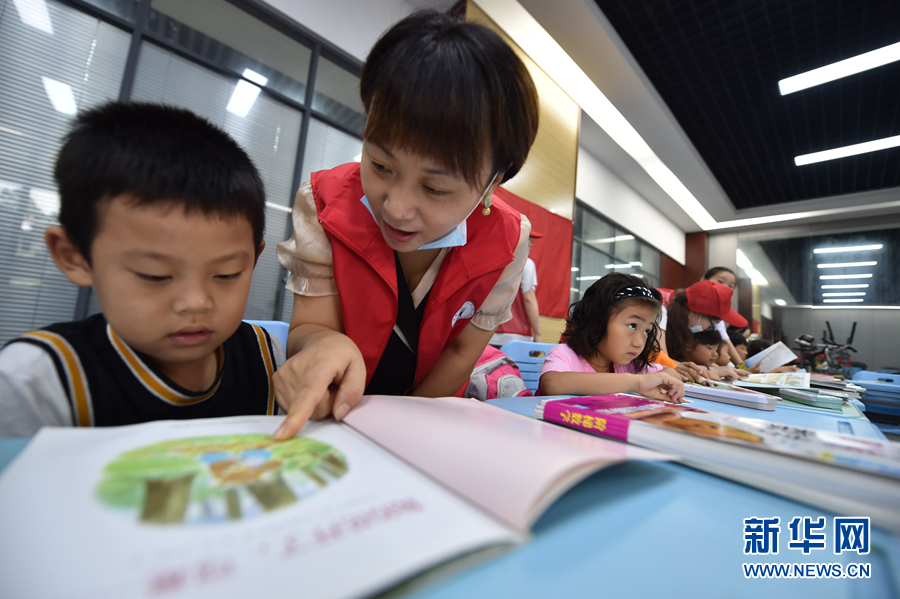 7月27日上午,志愿者在安置点中为孩子们辅导学习。