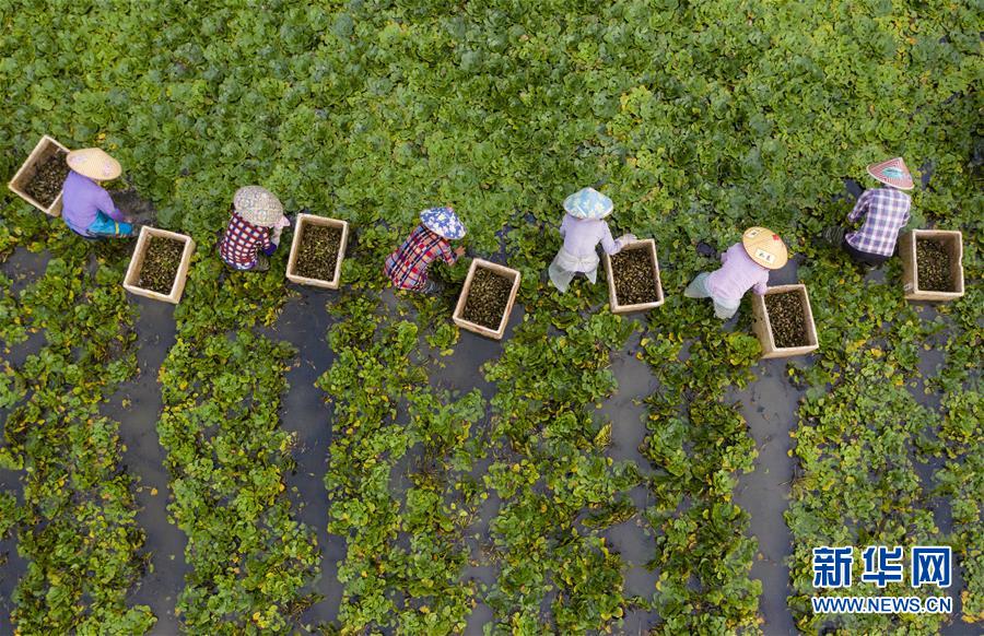 每逢7月至10月采收菱角的季节,就有一支由农村剩余劳动力和贫困户组成的“大妈团”,活跃在江西省新余市分宜县凤阳镇沔村菱角种植基地,她们每天工作8个小时,日均采收菱角6000多斤,供应江西、湖南、江苏、浙江等省内外市场。菱角被称为水中的“金元宝”,分宜县凤阳镇沔村菱角种植基地年产可达40至60万斤。“大妈团”成员每天务工收入80元,三个月下来可增收7000多元。据了解,“大妈团”除了采菱角,他们常年活跃在田间地头,也是种粮大户育秧插秧、果蔬基地种收的主力军,通过组团务工在家门口实现致富增收。