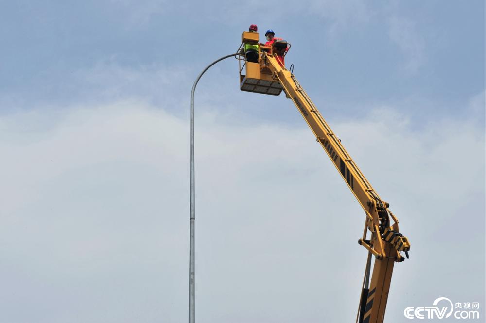 看似简单的路灯维修工作其实并不容易,在高空作业比地面作业难度要大得多。升降机升得越高,难度就越大,也越危险。从15米路灯的高度看下去,车如流水,城市的道路延伸至远方。