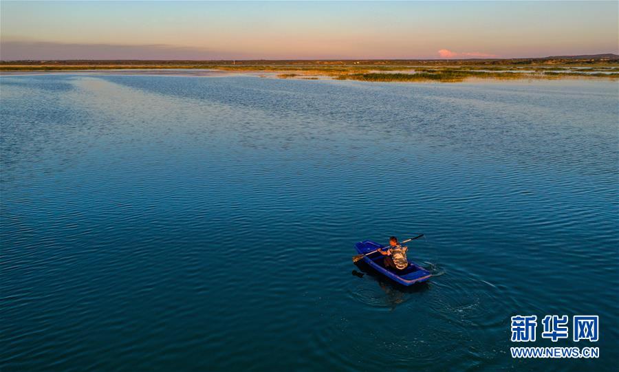 7月28日,任永奇在桃力庙—阿拉善湾海子巡视水域情况(无人机照片)。