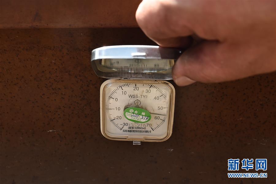 7月30日,在太中铁路山西吕梁段,刘锦鹏查看钢轨温度。 新华社发(柴婷 摄)