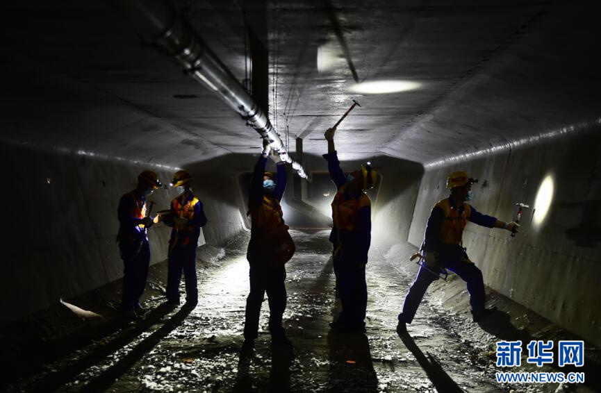 图为朝阳桥梁检查工区工人在十家子河特大桥内作业。新华网姜冰摄