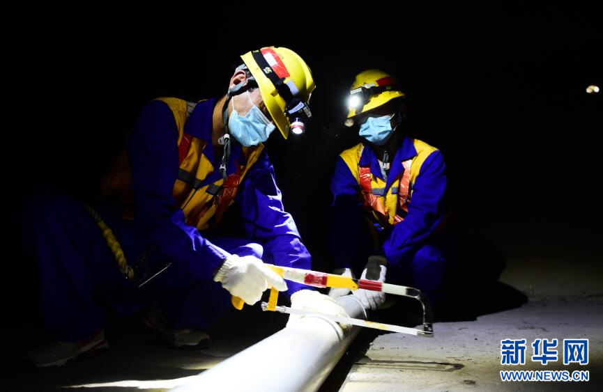 图为工人在切割排水管,准备更换。新华网姜冰摄