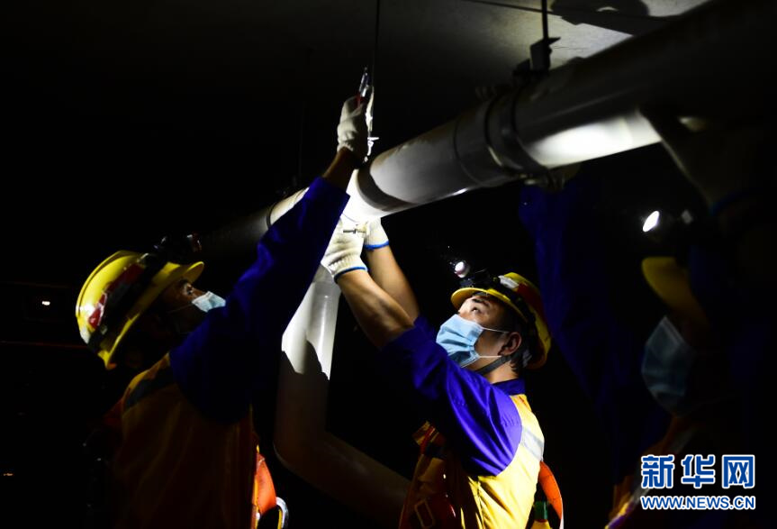 图为工人在更换大桥内部的排水管。新华网姜冰摄