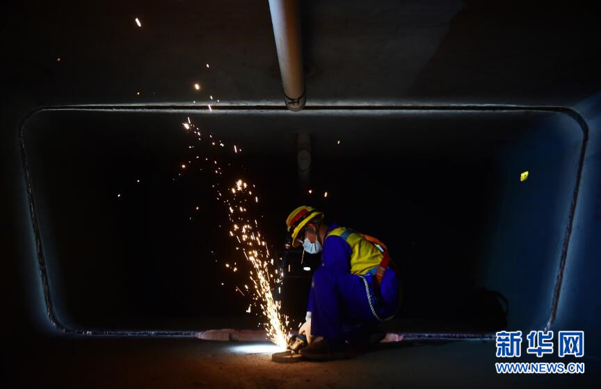 高温中坚守在大桥“肚子”里的维修工人
