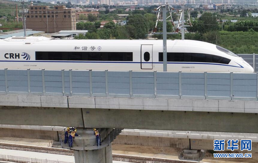 图为工人在十家子河特大桥墩台上作业。(无人机拍摄)新华网姜冰摄