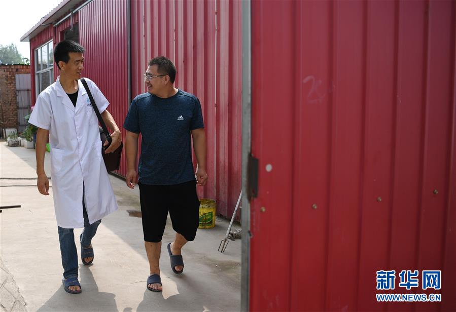 8月1日,徐宏业(左)在入户走访时和村民张微微交谈。 今年47岁的徐宏业是河北省河间市行别营乡小史村的一名乡村医生。1998年回到家乡后,徐宏业就一直扎根乡村,守护着村民的健康。22年来,无论春秋寒暑、路途远近,只要村民有看病需要,徐宏业就会出现在患者面前。在做好日常诊疗工作的同时,徐宏业常常放弃休息,入户巡诊,定期给村里的老人体检,针对慢性疾病开展随访,为村民建立起健康档案。 多年来,徐宏业还积极参与“善医行”公益活动,每年跟随团队到云南、四川等地的贫困山区开展义诊。 “村里的群众就是我的亲人,他们离不开我,我也离不开他们,当好一名乡村医生,是我这辈子的坚守。”徐宏业说。 新华社记者 朱旭东 摄