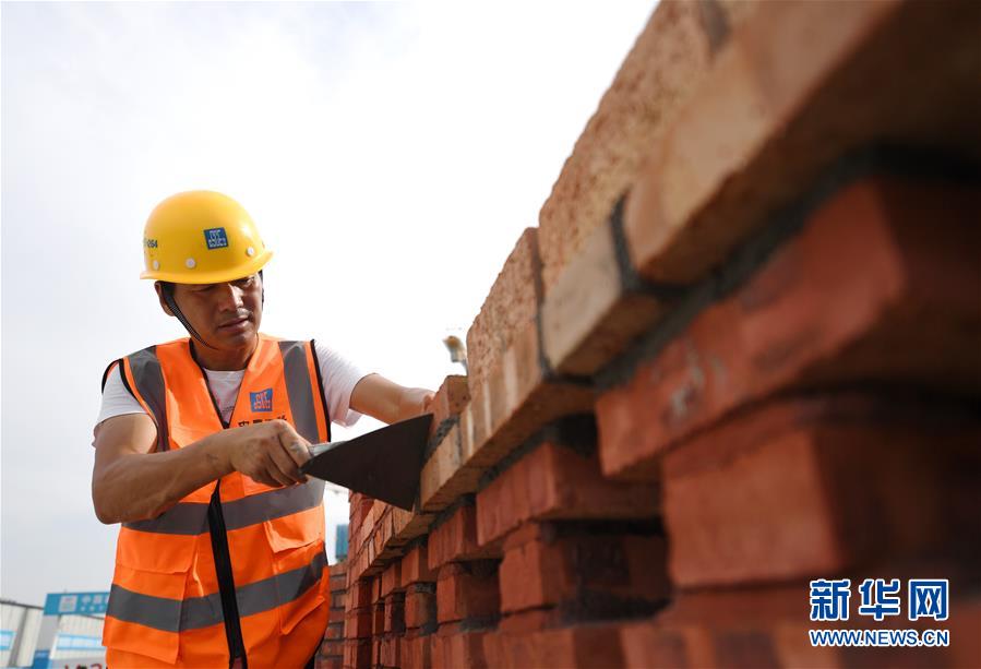 8月3日,工人在参加砌筑项目的比拼展示。 当日,中建二局有限公司在石家庄市一处工地举办2020年职工技能才艺展示暨一线工人“技能明星”大比武活动。20余名一线工人分别参加钢筋、焊接、砌筑、机电、塔吊等项目的展示与比拼。 新华社记者 朱旭东 摄
