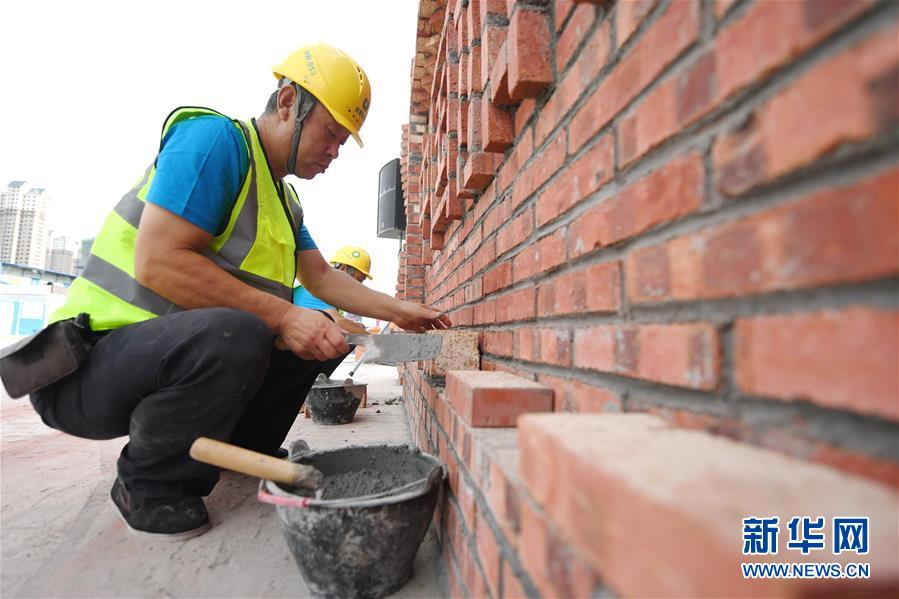 8月3日,工人在参加砌筑项目的比拼展示。 当日,中建二局有限公司在石家庄市一处工地举办2020年职工技能才艺展示暨一线工人“技能明星”大比武活动。20余名一线工人分别参加钢筋、焊接、砌筑、机电、塔吊等项目的展示与比拼。 新华社记者 朱旭东 摄