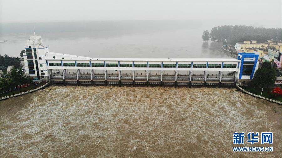 7月20日,淮河王家坝闸开闸泄洪(无人机照片)。 新华社记者 黄博涵 摄