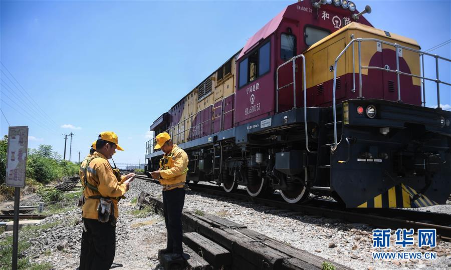 7月25日,在南宁车务段南宁南站调车场,调车员在分派检修任务。 入伏以来,广西南宁市持续高温。南宁车务段南宁南站的调车员们头顶烈日,坚守岗位,保障每一列货运列车准确编组和安全开行。 新华社记者 张爱林 摄