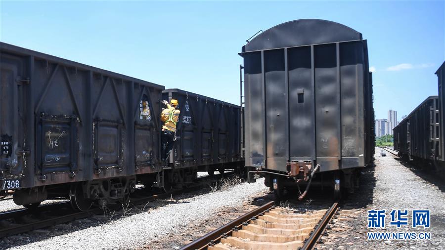 7月25日,在南宁车务段南宁南站调车场,调车员跟随车列进行牵出作业。 入伏以来,广西南宁市持续高温。南宁车务段南宁南站的调车员们头顶烈日,坚守岗位,保障每一列货运列车准确编组和安全开行。 新华社记者 张爱林 摄