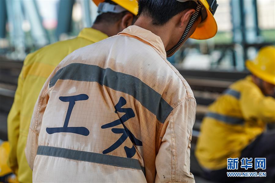 8月6日,桥隧工的工作服在作业时被汗水浸湿。新华社记者 李博 摄